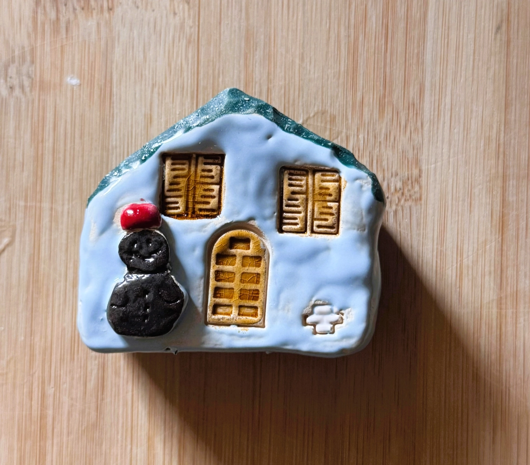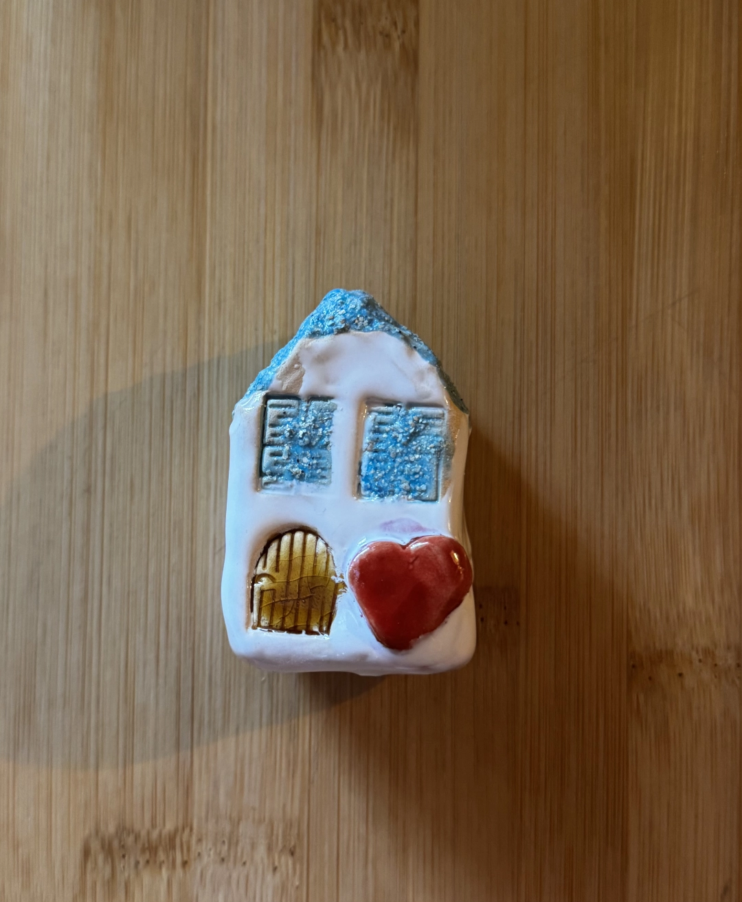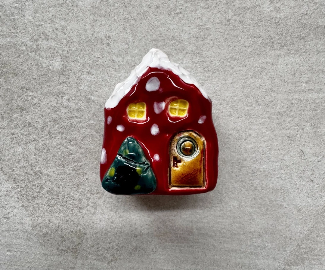 The elephants are made by hand from white clay. They are fired at 1,050 degrees, hand glazed and fired again at 1,050 degrees. Size: 4 x 9 cm or 5 x 10 cm.